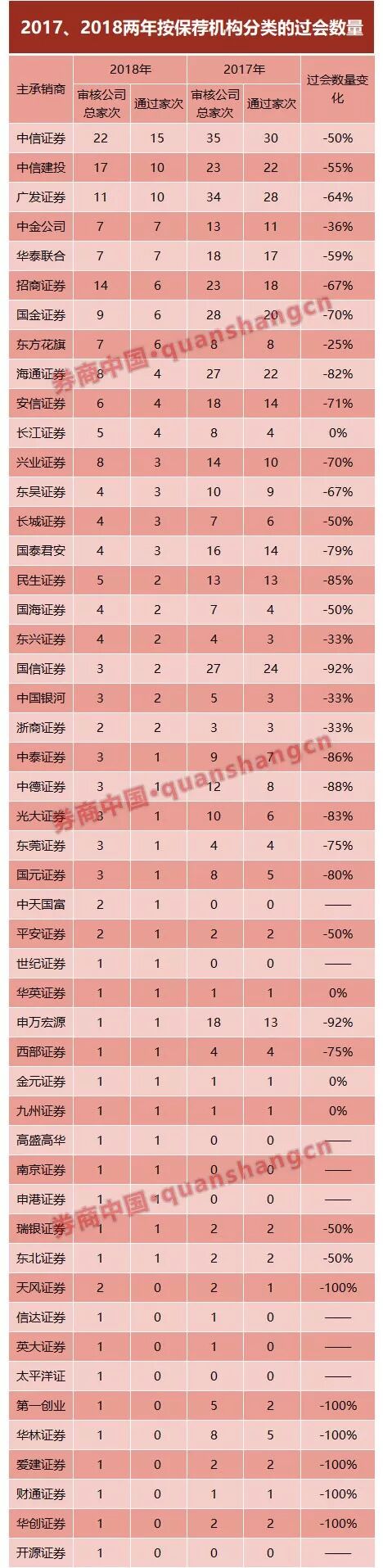 过会数量来看,中信、中信建投、广发证券居前三;从过会率来看,包括中金公司、华泰联合证券在内的14家券商达到100%过会率。