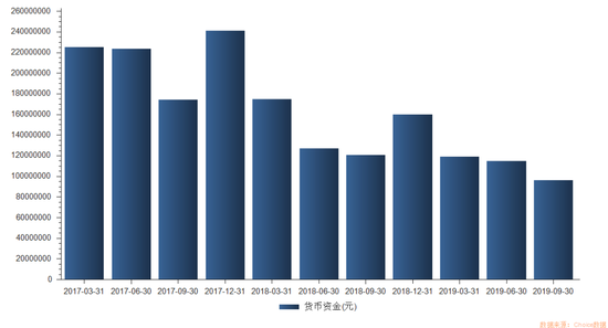 而伴随着利润率几近为零的软件外包生意恶化的,是诚迈科技的账面现金逐渐减少:2017年上市大举融资积累的一点点账面资金,现在已经只剩9600万。
